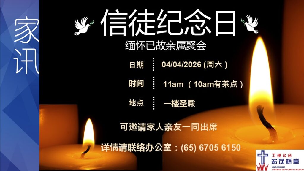 每年的这段时刻,周六(04/04/2026)上午11时,卫理公会宏茂桥堂都会聚集一些会友及家人,他们不是为了欢庆复活节而来,他们扶老携幼来纪念离世的亲人。