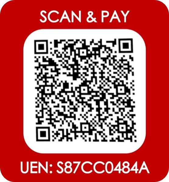 使用各银行手机应用程序扫描二维码或输入UEN:S87CC0484A