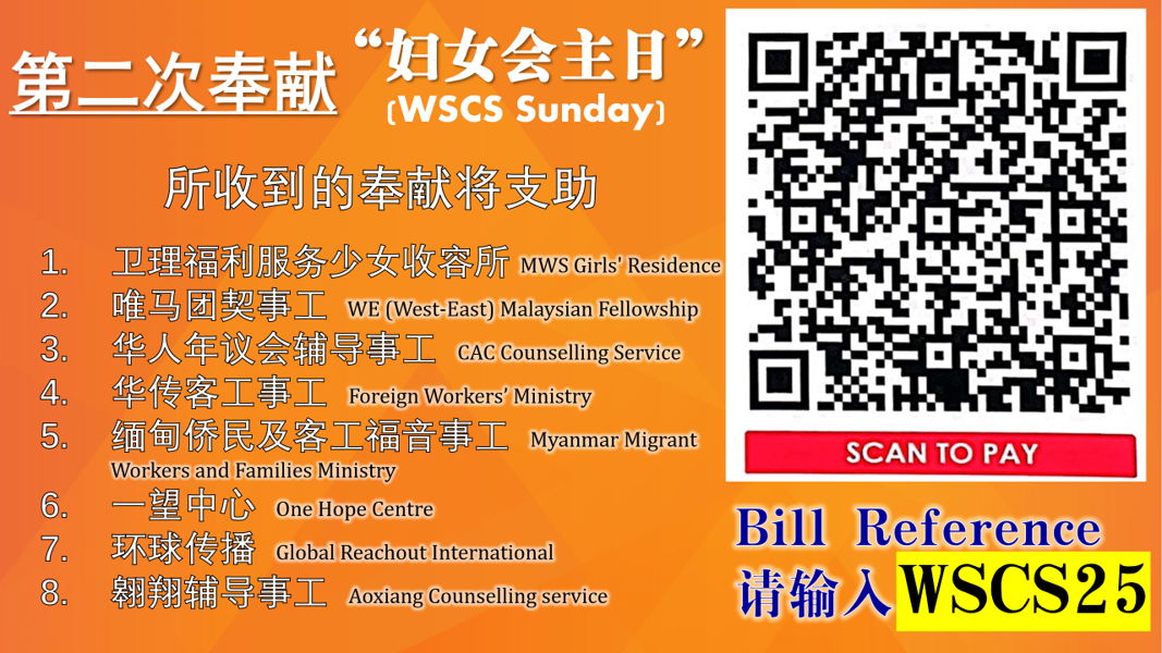 4)电子奉献 INTERNET BANKING Name of payee: Ang Mo Kio Chinese Methodist Church Bank name: UOB Bank Account number: 408-301-193-3 5)第二次奉献 Second offering 6)翻新更心献于主奉献